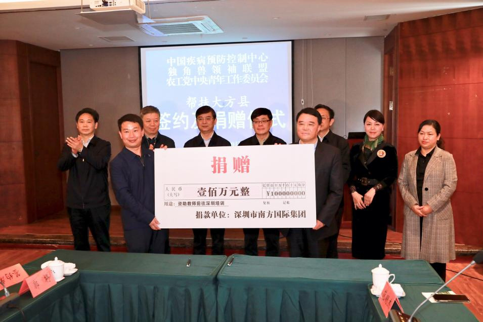 2019年,集团向“毕节市大方县”捐赠教育扶贫基金100万元,计划资助大方县教师前来深圳参加公益培训。全国政协副主席、农工党中央常务副主席何维,全国人大常委会委员、农工党中央副主席龚建明和全国政协常委、农工党中央专职副主席兼秘书长曲凤宏,毕节市委副书记、市长张集智出席捐赠仪式。